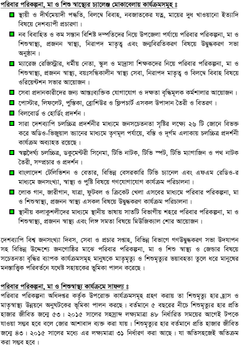 পরিবার পরিকল্পনা অধিদপ্তরে সাফল্য/অর্জন